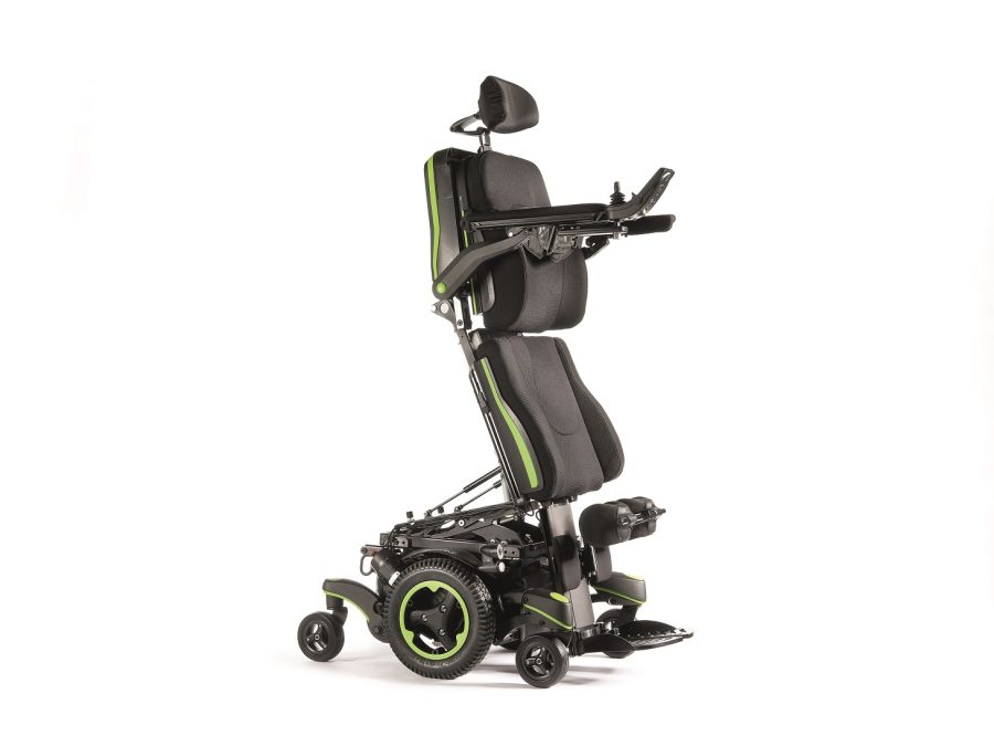 Dank einer eingebauten Aufrichtfunktion ermöglicht dieses Rollstuhlmodell dem Nutzer, vom Sitzen ins Stehen zu kommen. Stehrollstühle sind je nach individuellen Anforderungen manuell oder elektrisch erhältlich.