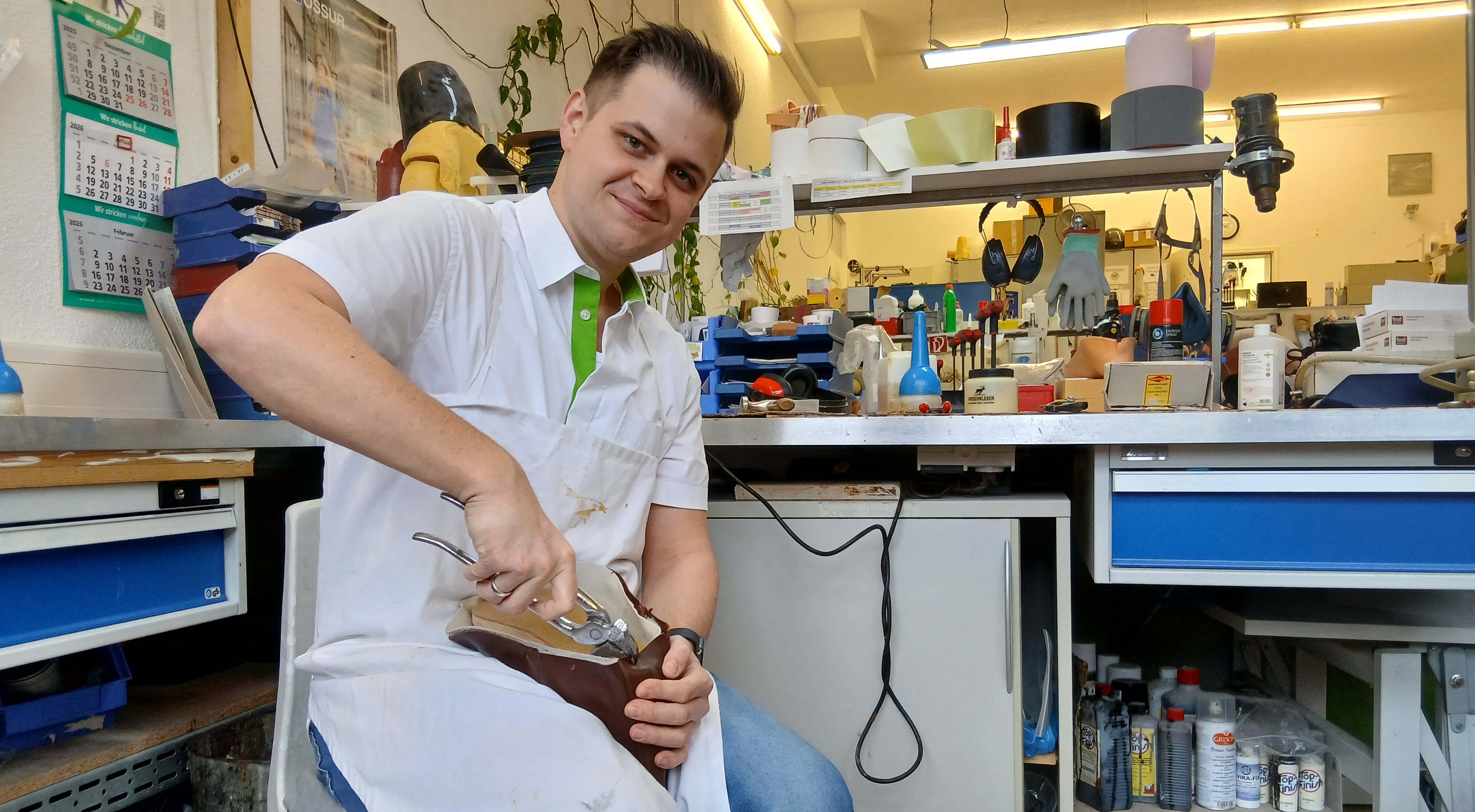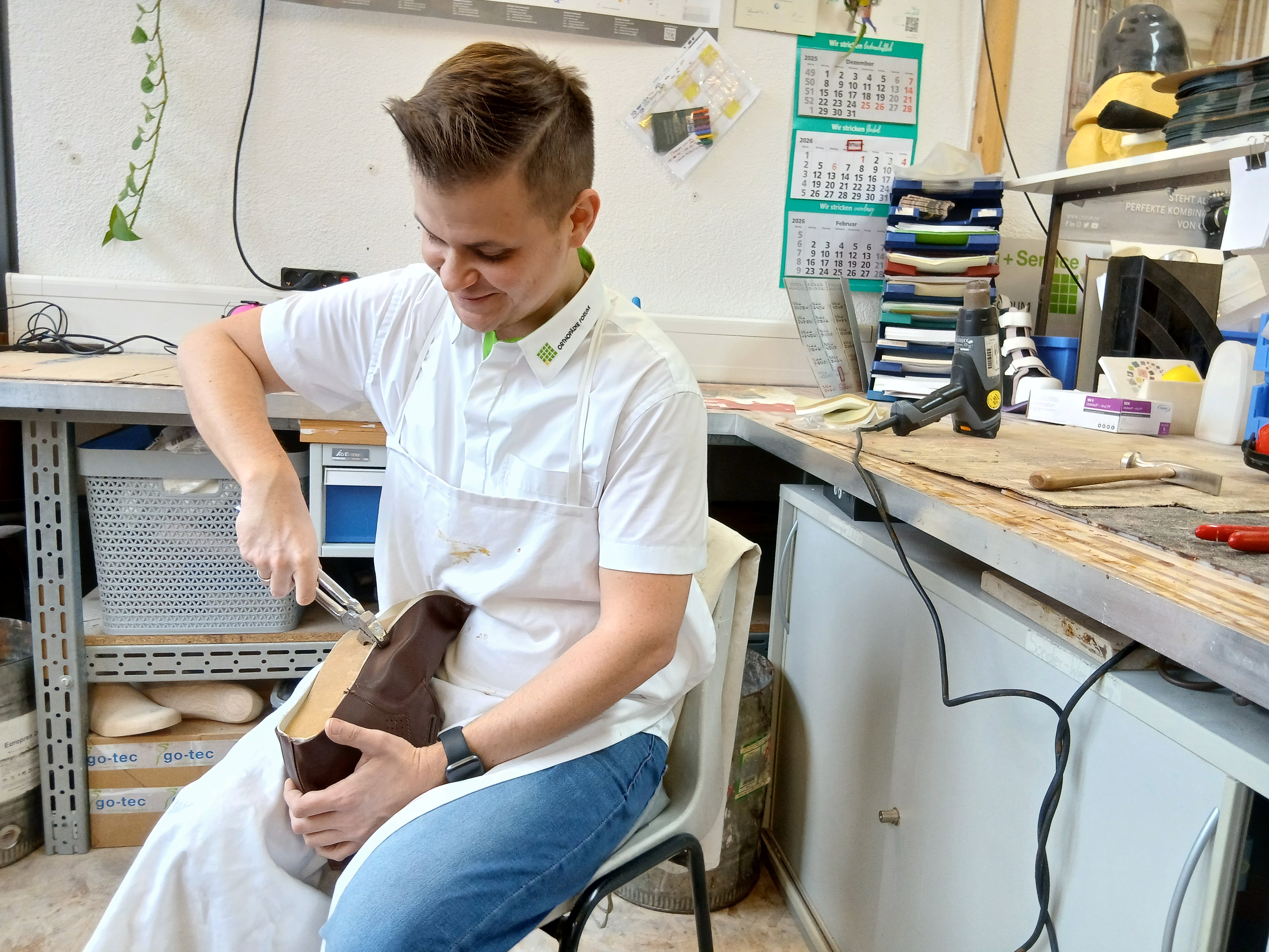 Der gesamte Prozess vom ersten Gespräch, über die Materialauswahl, dem Vermessen der Füße, das Designen, die Entwicklung des Schuhkonzeptes, die Beantragung bei der Krankenkasse, das Fertigen der Schuhleisten und der Probeschuhe, dem erneuten Maßnehmen, dem Bau des Maßschuhes, bis hin zur Auslieferung.